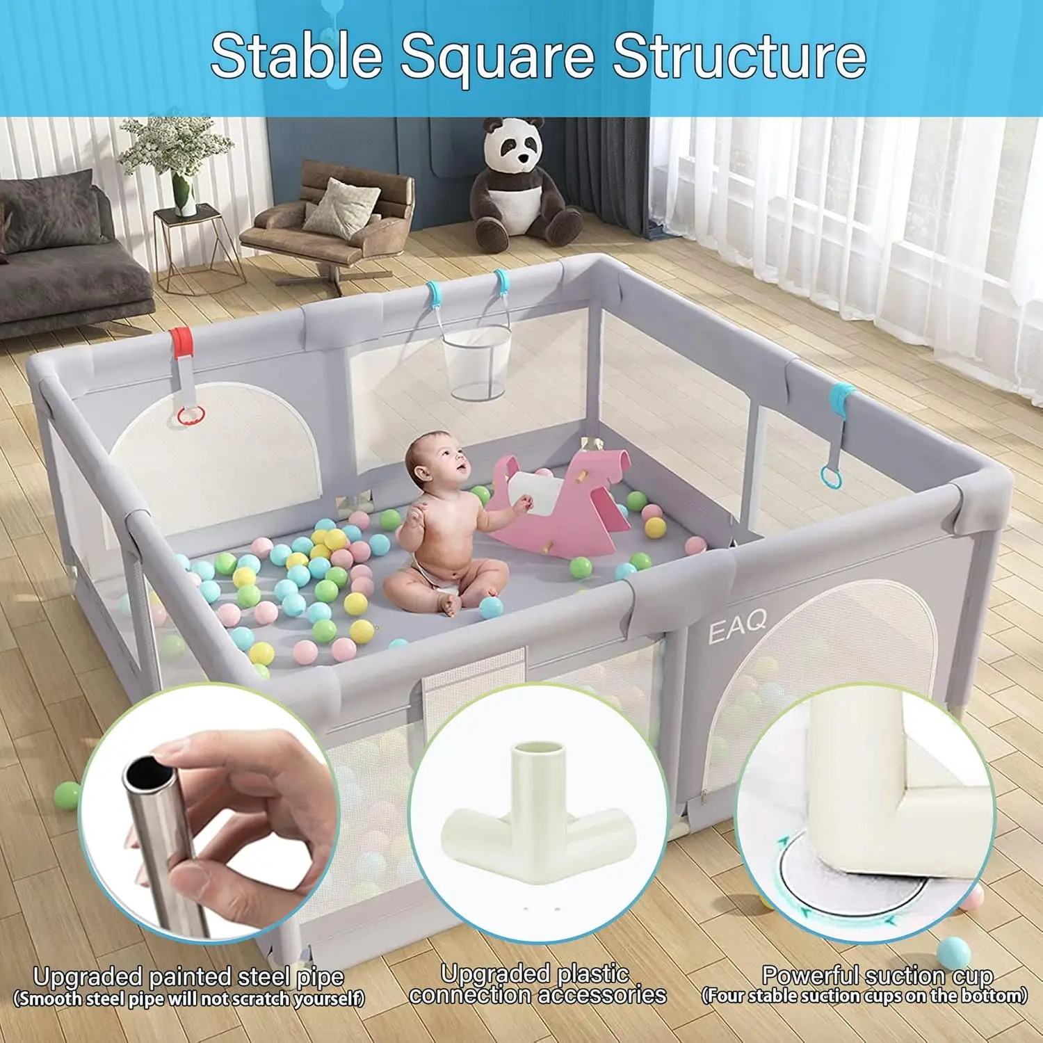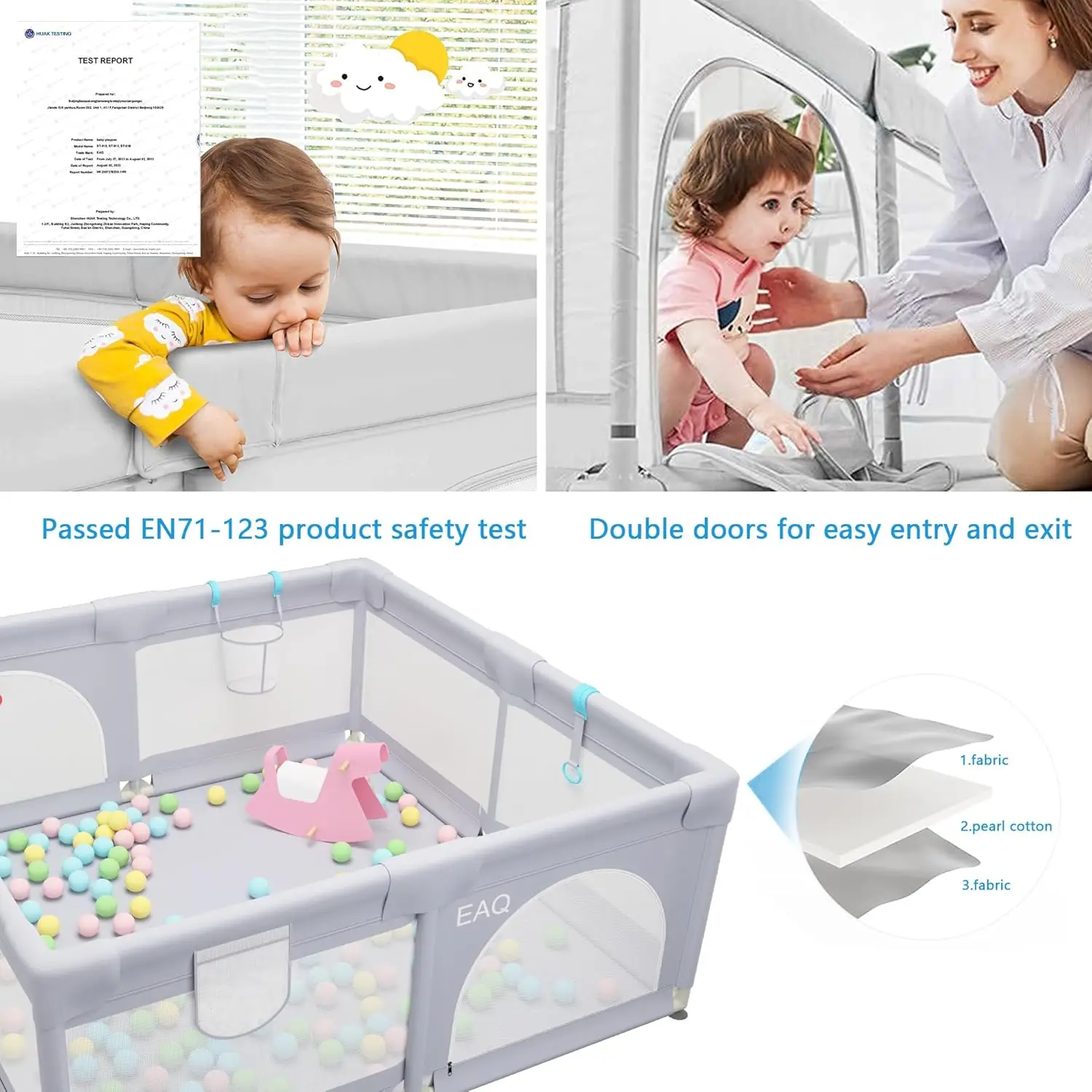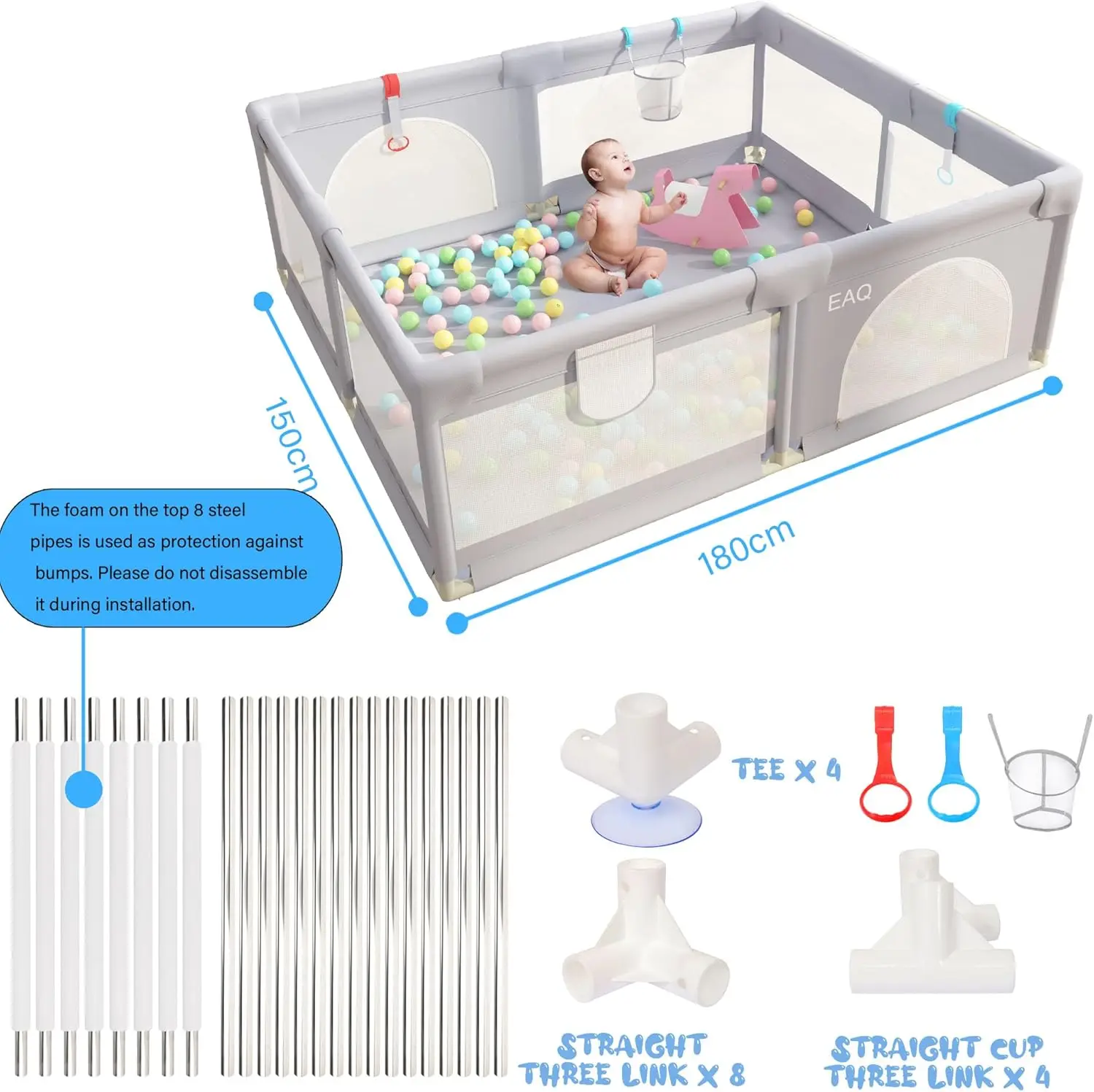 - 💖【Time to play】Kids like to pay attention to various things and like to play games, but when mom has other things to do, there is no way to always pay attention to the baby. Fortunately, EAQ’s playpen for babies can turn any place into a safe Game space! Moms can let go of their own affairs. (Please note that the product does not include the ball in the playpen) .